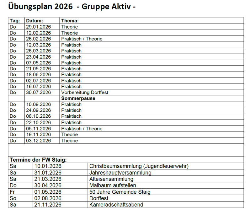 Übungsplan 2026 (PDF)